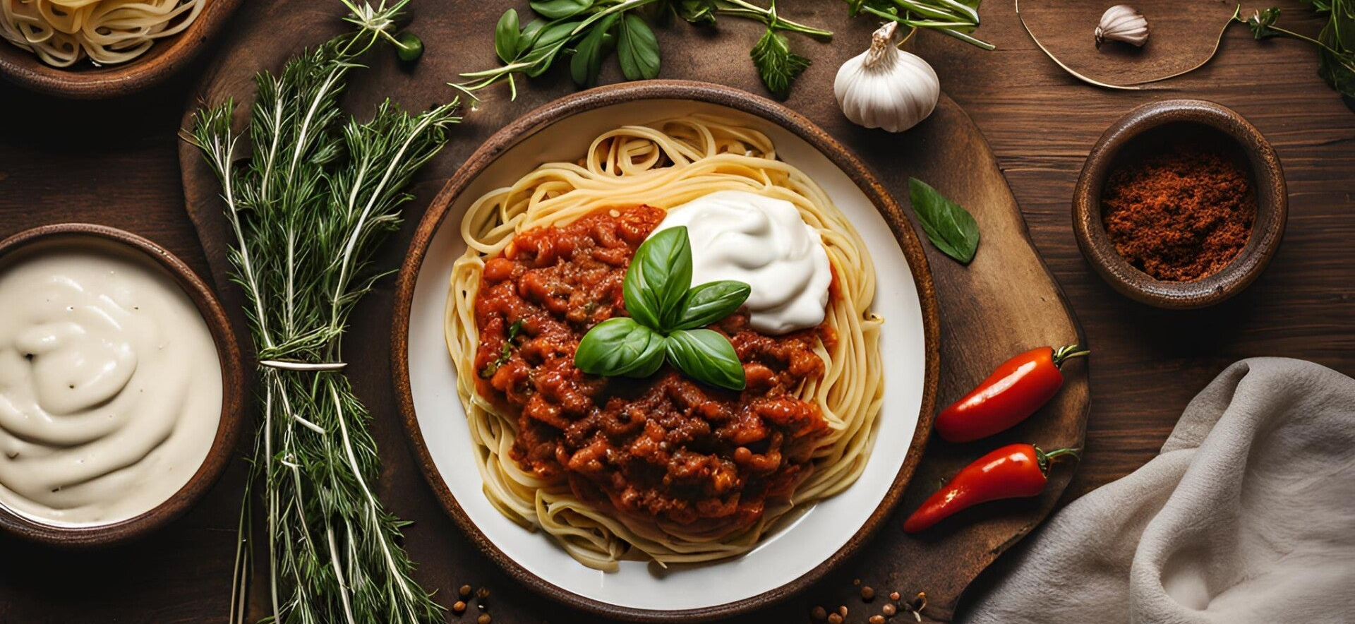 Rezept: Pasta mit würziger Tofu-Hackfleischsoße & Joghurt-Dip 🌱🍝